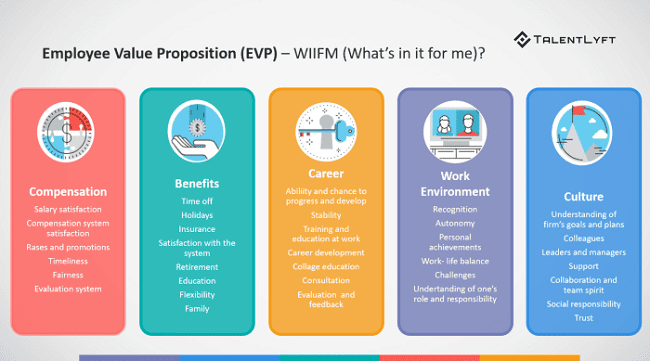 EVP có thể hiểu là các lợi ích đặc trưng của doanh nghiệp nhằm thu hút ứng viên. Sau khi thu thập ý kiến từ các luồng thông tin trong và ngoài doanh nghiệp, bạn tiếp tục khoanh vùng những EVP có thể gắn kết nhân viên, đảm bảo vừa đủ tạo ra sự khác biệt mà vẫn hấp dẫn ứng viên trong ngành.
